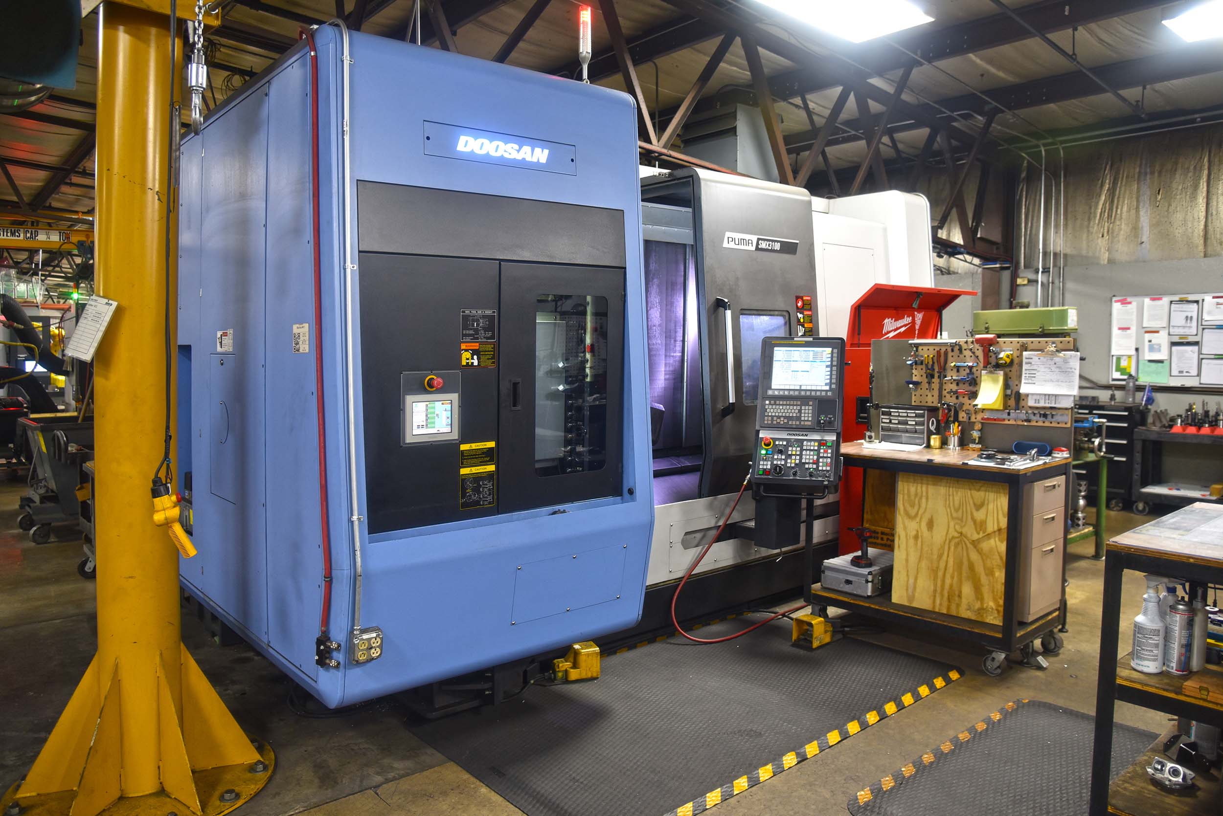 Our new Doosan-Puma SMX3100 has arrived and is ready to go! This is a High Performance 5-Axis Turning Lathe with a 40 HP Main Spindle and 35 Milling HP.